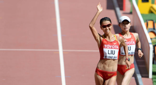 Liu and Lu entered the packed Birds Nest together, and in what looked like a pre-ordained agreement, Lu remained in second place a pace behind overall winner Liu.