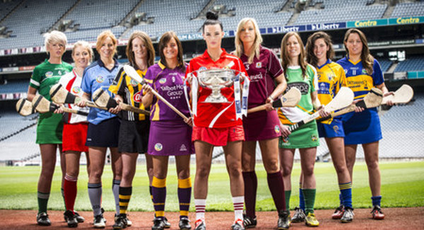 Camogie players pictured at the launch of the 2015 Liberty Insurance Camogie Championship season in Croke Park on Tuesday, June 16th included Dublin’s Elaine O’Meara (third from left) and Clare’s Carol O’Leary (second from right).
