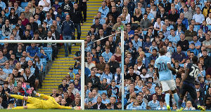 City won a series of corners as they upped the pressure after the break and Yaya Toure had three chances to claim an equaliser in quick succession. The Ivorian was first crowded out after combining well with Raheem Sterling, then forced Adrian to save and then shot across goal.