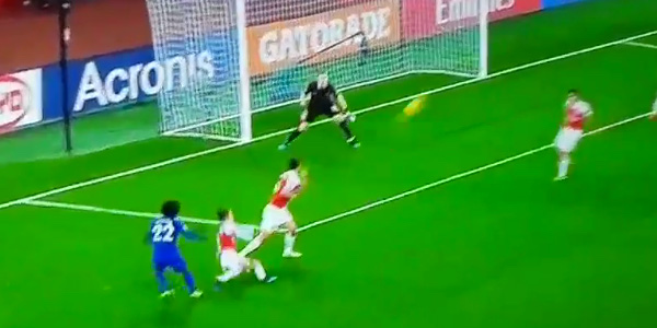 Chelsea’s Willian may have just won himself the award for worst shot of the season after this horrific attempt against Arsenal at the Emirates.