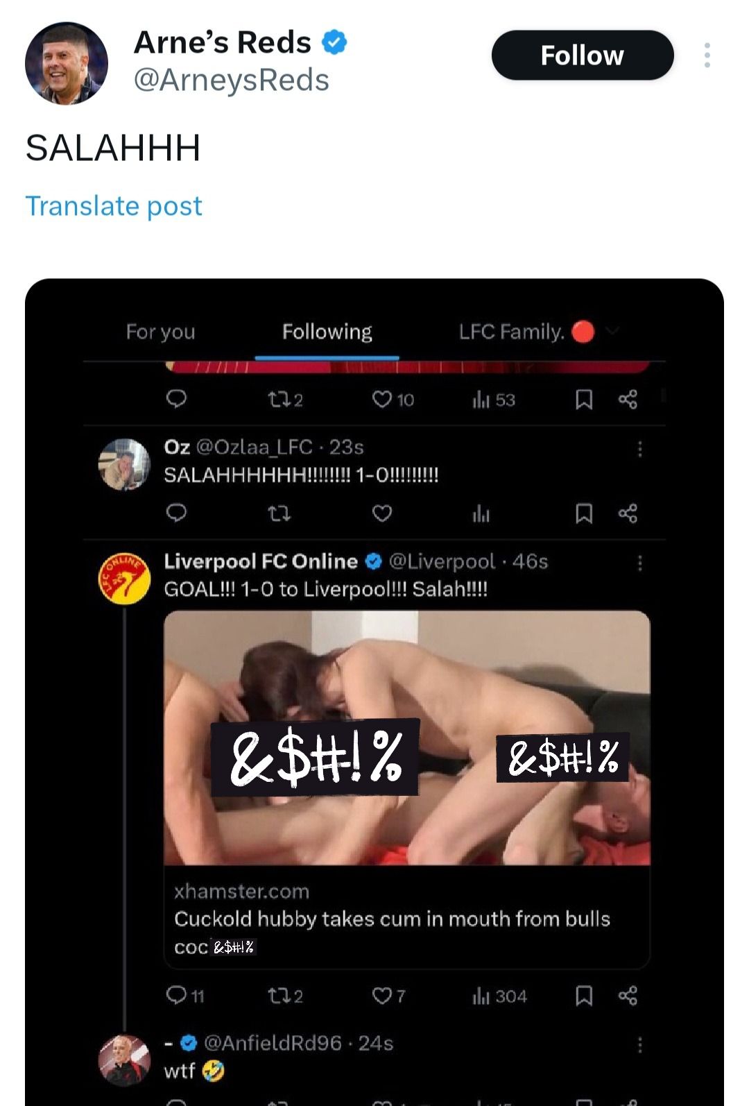 A Liverpool fan account posted that the Egyptian king had opened the scoring but alongside a bizarre link to a very adult video.