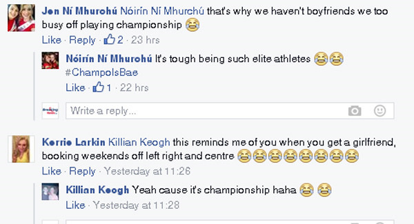 The unnamed couple are having a lively exchange of views about what appears to be his intention to cancel a pre-arranged date in order to watch UL play – in a Championship game.