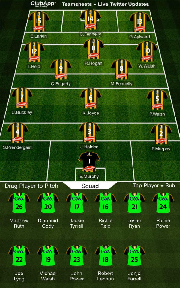 And there is a boost for Cats supporters too as Jackie Tyrrell and Richie Power are both named among the substitutes with Mark Kelly and Conor Martin unfortunate to make way.